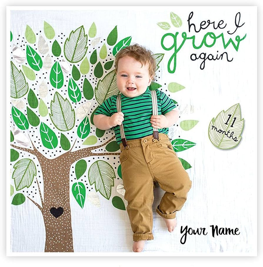 The Baby’s First Year™ blanket & card set makes the perfect prop for easy DIY monthly photos! This deluxe set includes one muslin blanket with metallic print, 14 coordinating milestone cards for recording baby’s age from 1 day to 1 year, and four additional holiday cards. Snap a photo and share with friends on social media, create beautiful keepsake photos, and add other props and toys for a personal touch. Perfect for the modern social parent!