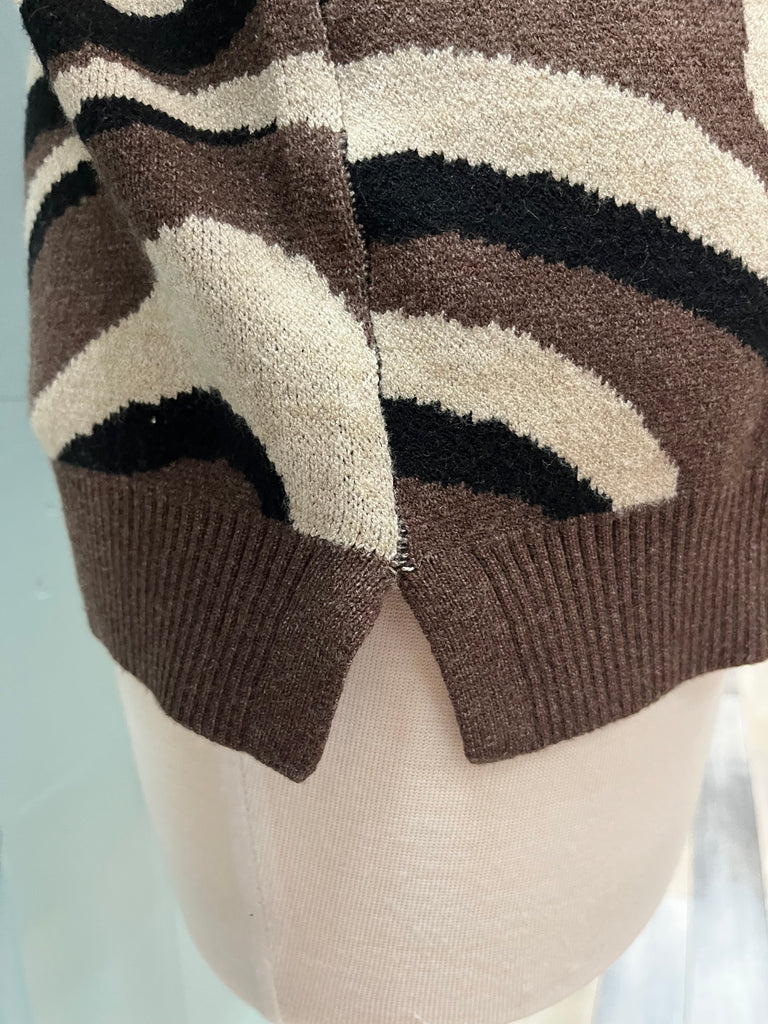 This swirl mock turtleneck features side slits for an added detail.