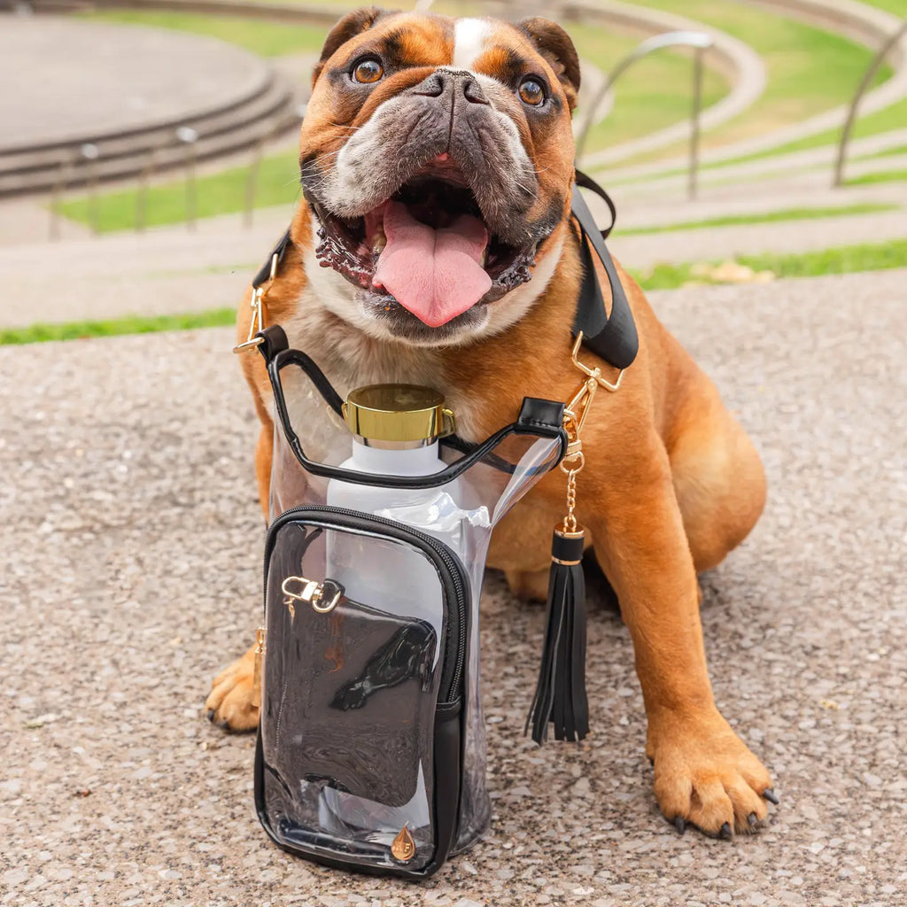 This Clear HydroBag® Stadium with Black Trim and Matching Pouch is a stylish accessory for any fan who wants to be "game day ready"! It's the perfect crossbody bag to carry your water bottle, keys, cards, and cash hands-free, you won't even break a sweat! Score the winning look and show your team spirit!