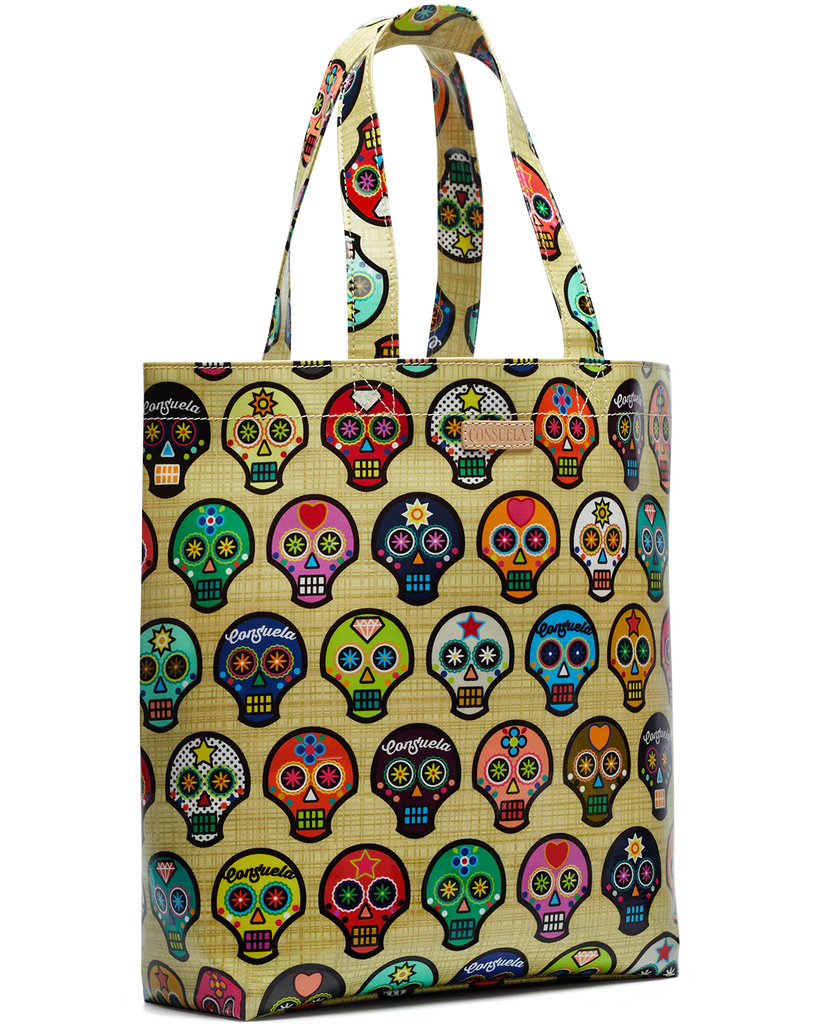 Our Sugar Skulls Basic Bag in easy-to-clean ConsuelaCloth™ holds a ton and can be easily folded into your everyday bag, stashed under your car seat, or thrown in the grocery cart. Use this unlined utility tote as a beach bag, gym bag or carry-all; the options are endless!