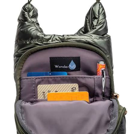Large Waterproof Pocket — This puffer bag fits bottles 3.5-in or less in diameter; Protects your essentials from spilled water; Ideal for water bottles, reusable soda & coffee cups, & wine bottles (great gift)!