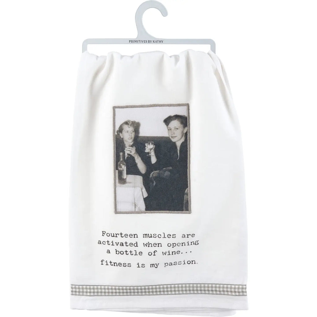 Our Fitness Is My Passion kitchen towel is machine-washable for convenient cleaning. A fun and functional everyday kitchen accent.