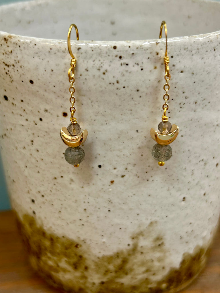Labradorite Moon Gold Earrings