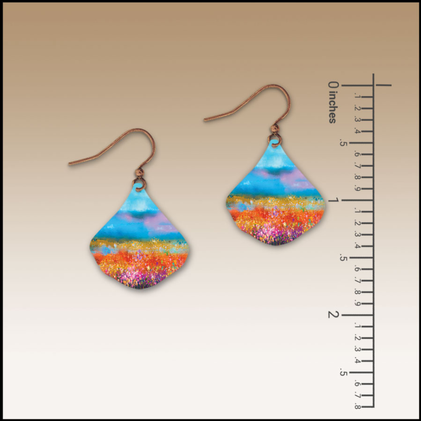 Our very stylish earrings are ultra-light weight & water resistant. Each earring is a handcrafted UV giclée image printed on stainless steel. The ear wires are hypo-allergenic, antique copper and contain no nickel. Dimensions: ½” Wide x 1 ⅜” Drop Length.
