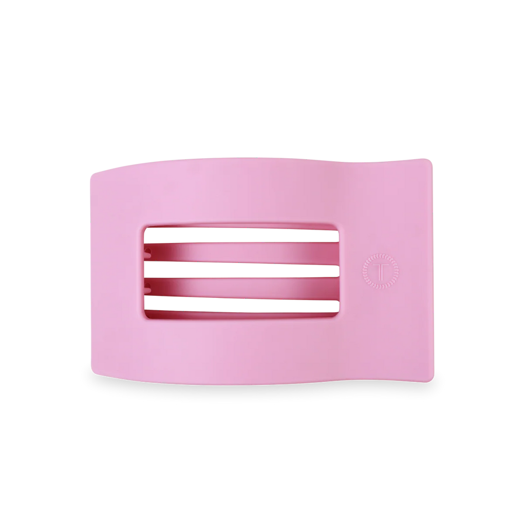 the TELETIES Merry Pinkmas Flat Rectangle Hair Clip in Matte Pink, the newest addition to our best-selling Flat Clip Collection. Joining the original Round and Square styles, this elevated rectangular design offers the same flat-back comfort and stronghold TELETIES is known for - now with a sleek, modern style.
