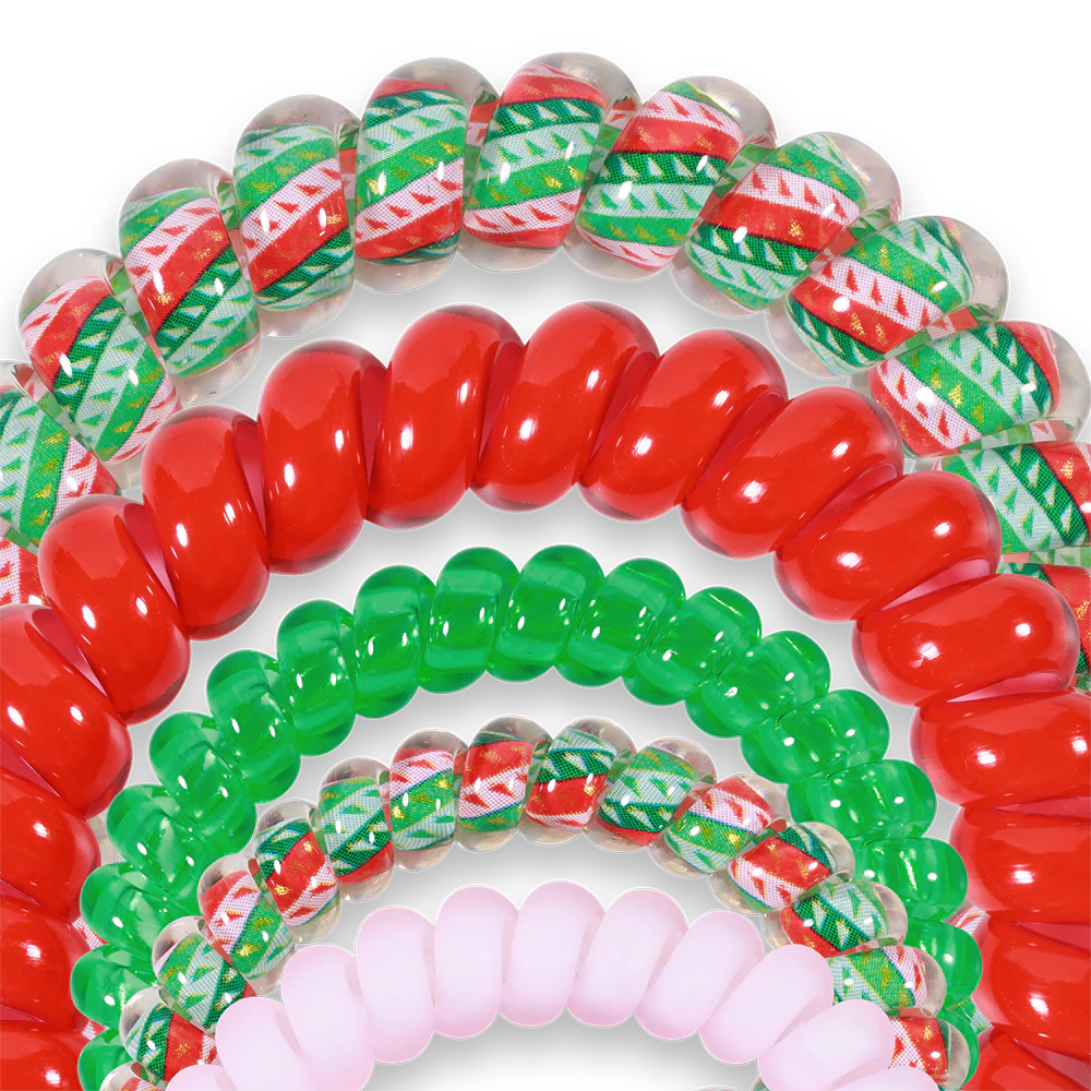 Hold your hair in place with ease and style!You Crack Me Up Mix Pack Hair Tiesin Red, Green, and Pink offer a strong grip without damage, doubling as a stylish bracelet when not in use. Your new favorite hair essentials all year round.