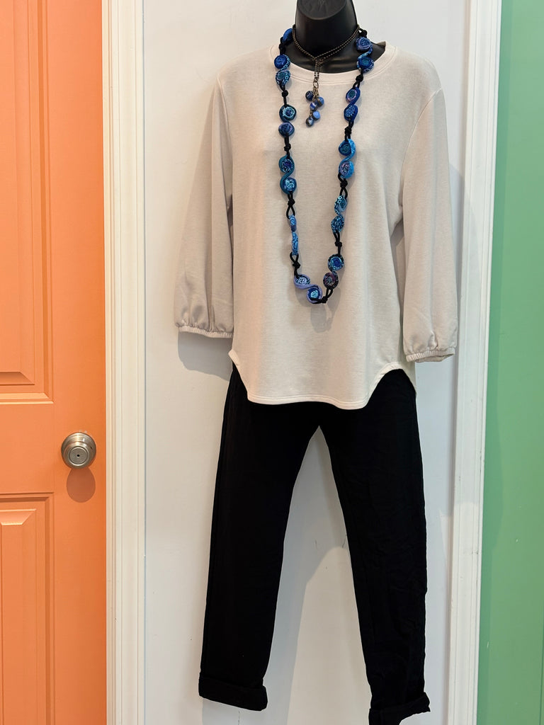 Silver Birch, 3/4 sleeve, scoop neck top.